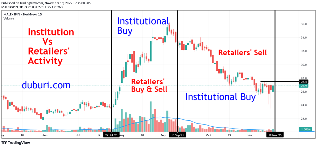 Example: If the height of the diamond is Tk.10 and the breakout occurs at Tk.50, the target would be Tk.60.