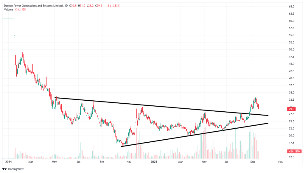 - উভয় trendline—upper ও lower—একটি symmetrical angle এ converge করে।