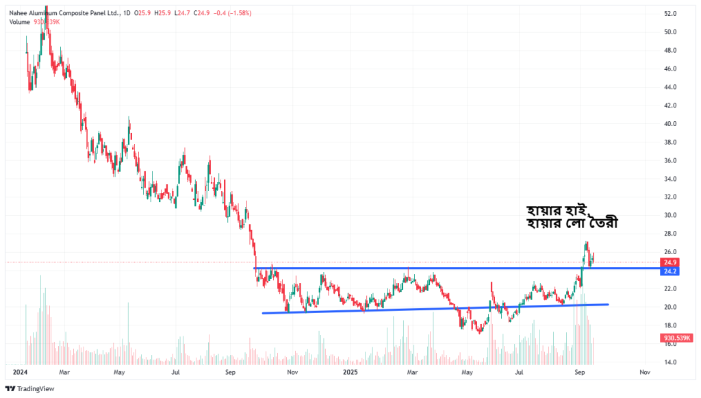 - দাম এক রেঞ্জের মধ্যে উপরে নিচে ওঠা-নামা করে (সাইড ওয়েজ)।